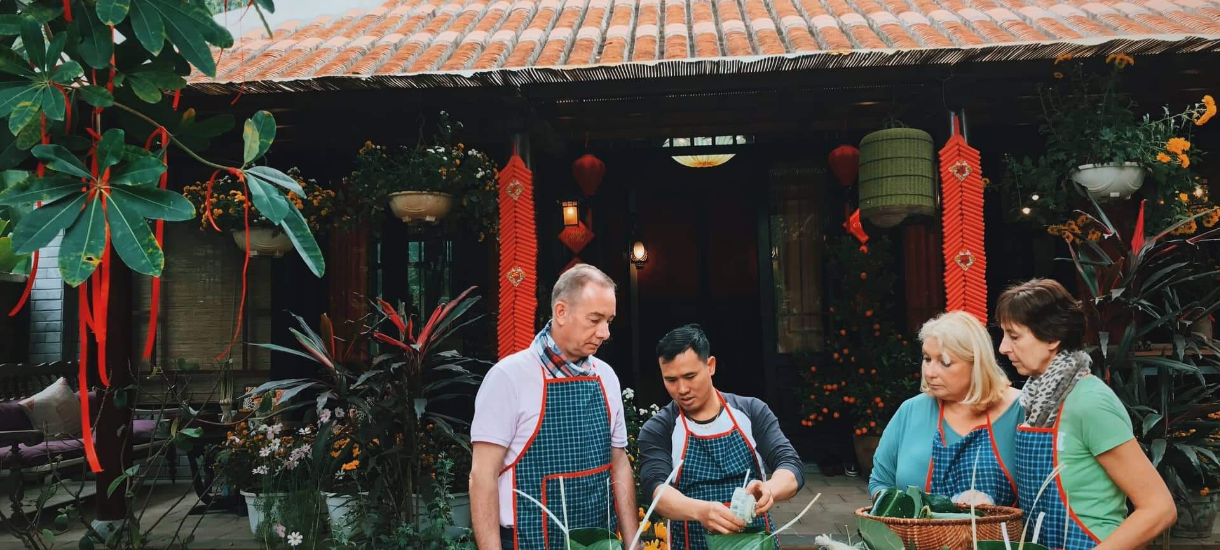 There is a great variety of cooking classes in Hanoi. Still, very few (or even none) offer a private cooking class in an Indochina-style homestay villa on the Red Riverbank, like Tấm Cuisine. What makes this class outstanding is also the cooking instructor, the talented Hanoi housewives who are known as the masters of the kitchen. They are experts at choosing the best ingredients from the market, balancing ingredients, flavors and dishes, and incorporating the yin and yang philosophy that is essential in Vietnamese cuisine.