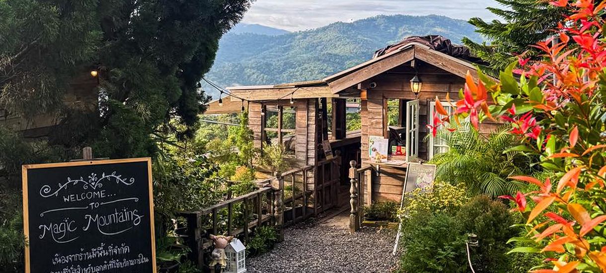 Just like its name, the Magic Mountain is a hilltop café nestled on the Pha Chang Noi peak. With its cute, cozy exterior, wooden structure, and warm yellow lights, some might easily mistake it for a charming local home.