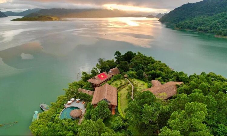 Mai Châu Hideaway Lake Resort is a serene eco-retreat in Mai Chau, set along the peaceful shores of Hoa Binh Lake. Surrounded by nature, the resort features private bungalows and villas designed to blend harmoniously with the landscape, offering a secluded and tranquil escape.