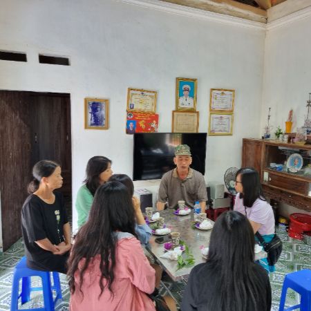 Seventy-five kilometers from Hanoi, at the foot of Ba Vi mountain, the ancestral mountain of Vietnam, lies an idyllic countryside. Mr. Duoc, a veteran, welcomes you to his house, nestled beautifully in a luxurious garden. Sip a cup of green tea and listen to him tell his stories as a soldier in the Vietnam War and, later, a worker at a tea factory. You might have a chance to meet three generations in his family living under the same roof - a typical lifestyle of Vietnamese families. After the talk, you will briefly walk on dirt roads to visit his tea farm and learn to pick tea buds under his guidance. See how the family traditionally processes the tea to retain the maximum amount of the tea leaf’s nutrients.